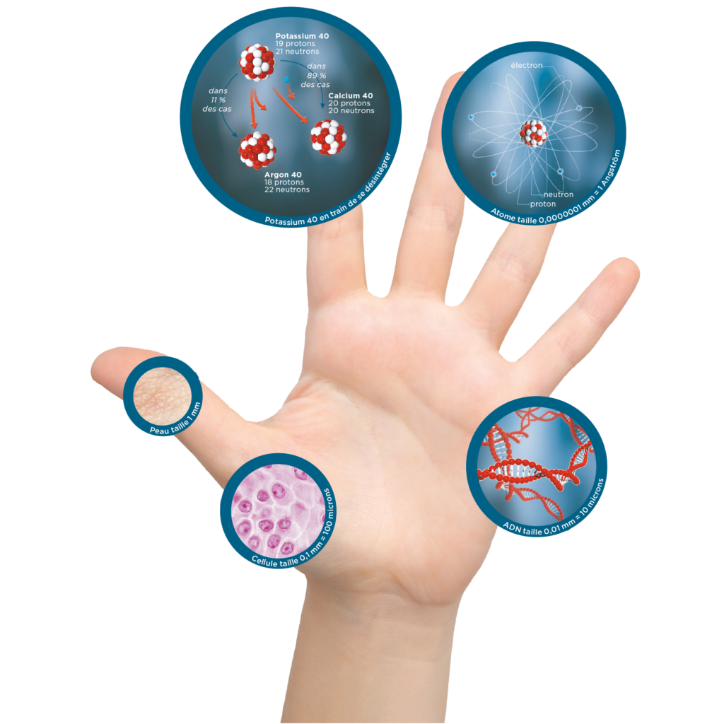 Notre corps est composé d’une multitude de minuscules grains : les atomes. Connectés les uns aux autres, ils forment les molécules qui elles-mêmes constituent la structure de base de la matière.