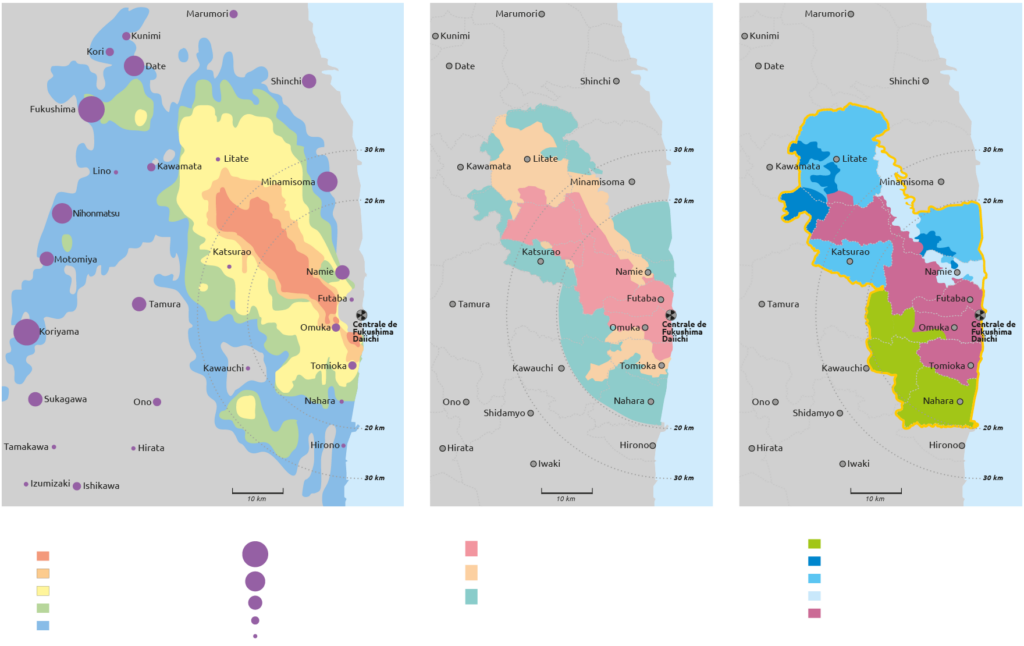 Selon l’importance de la contamination et de la possibilité de décontaminer, un plan gouvernemental a prévu un devenir différencié selon les communes.