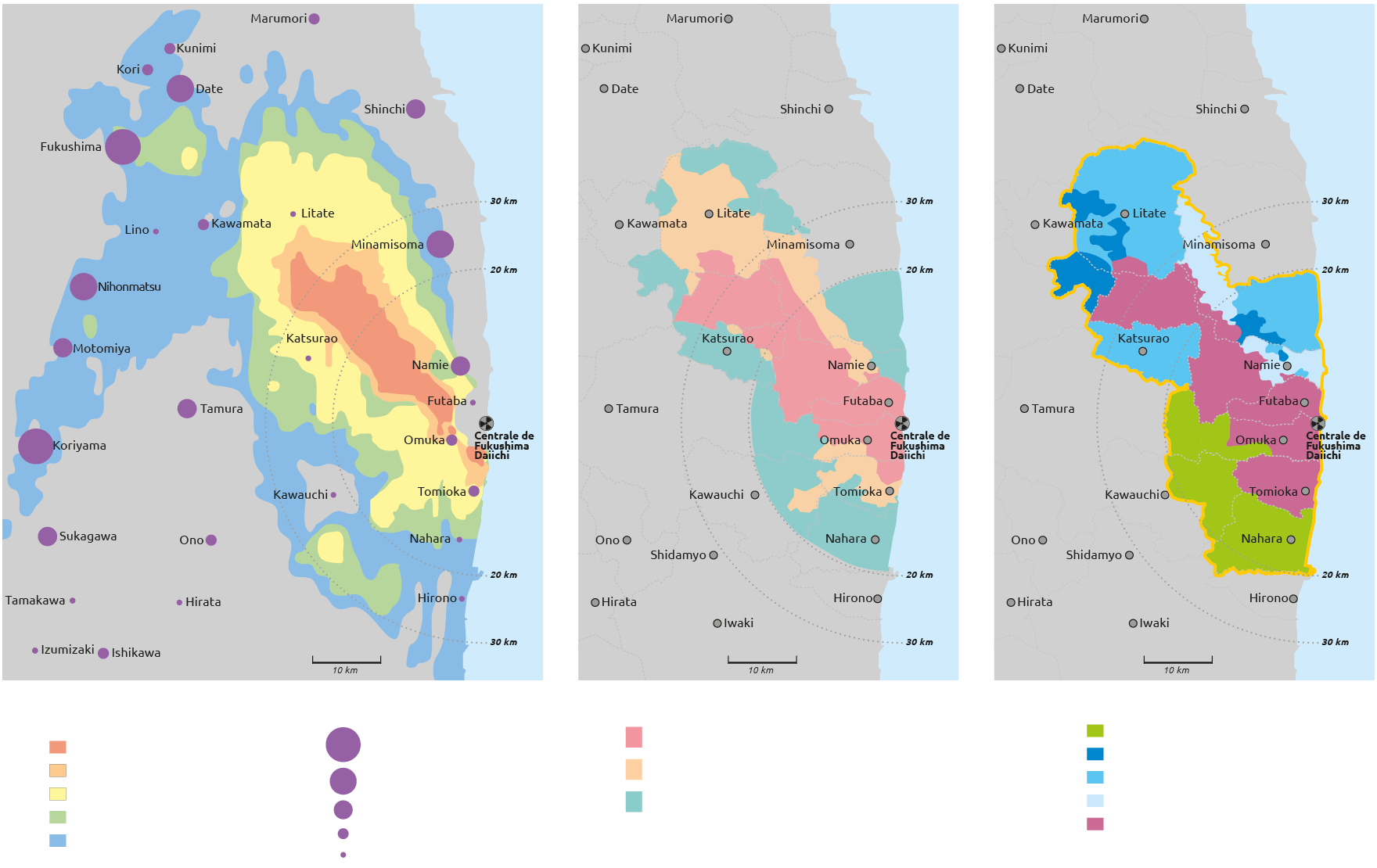 Selon l’importance de la contamination et de la possibilité de décontaminer, un plan gouvernemental a prévu un devenir différencié selon les communes.