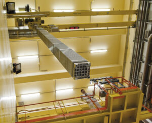 Sorti de la mine, l’uranium subit de multiples traitements physico-chimiques pour finalement être mis sous forme de pastilles de dioxyde d’uranium. Elles sont empilées dans des gaines de « crayons » qui composent les « assemblages ».